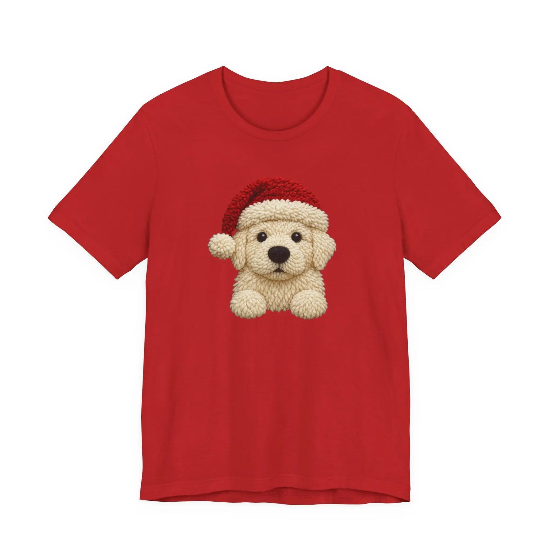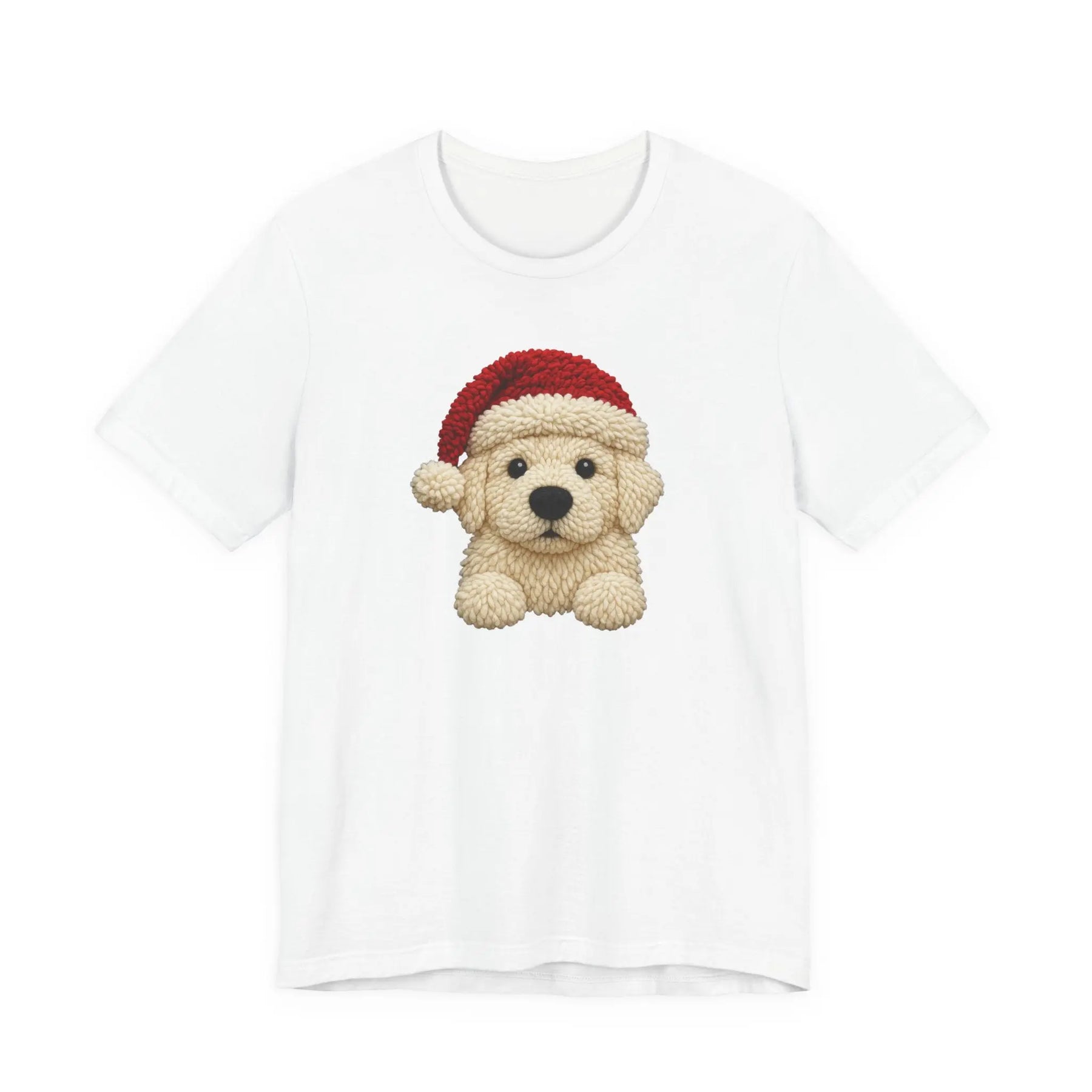 tee shirt noël golden retriever – chiot tricot bonnet rouge
