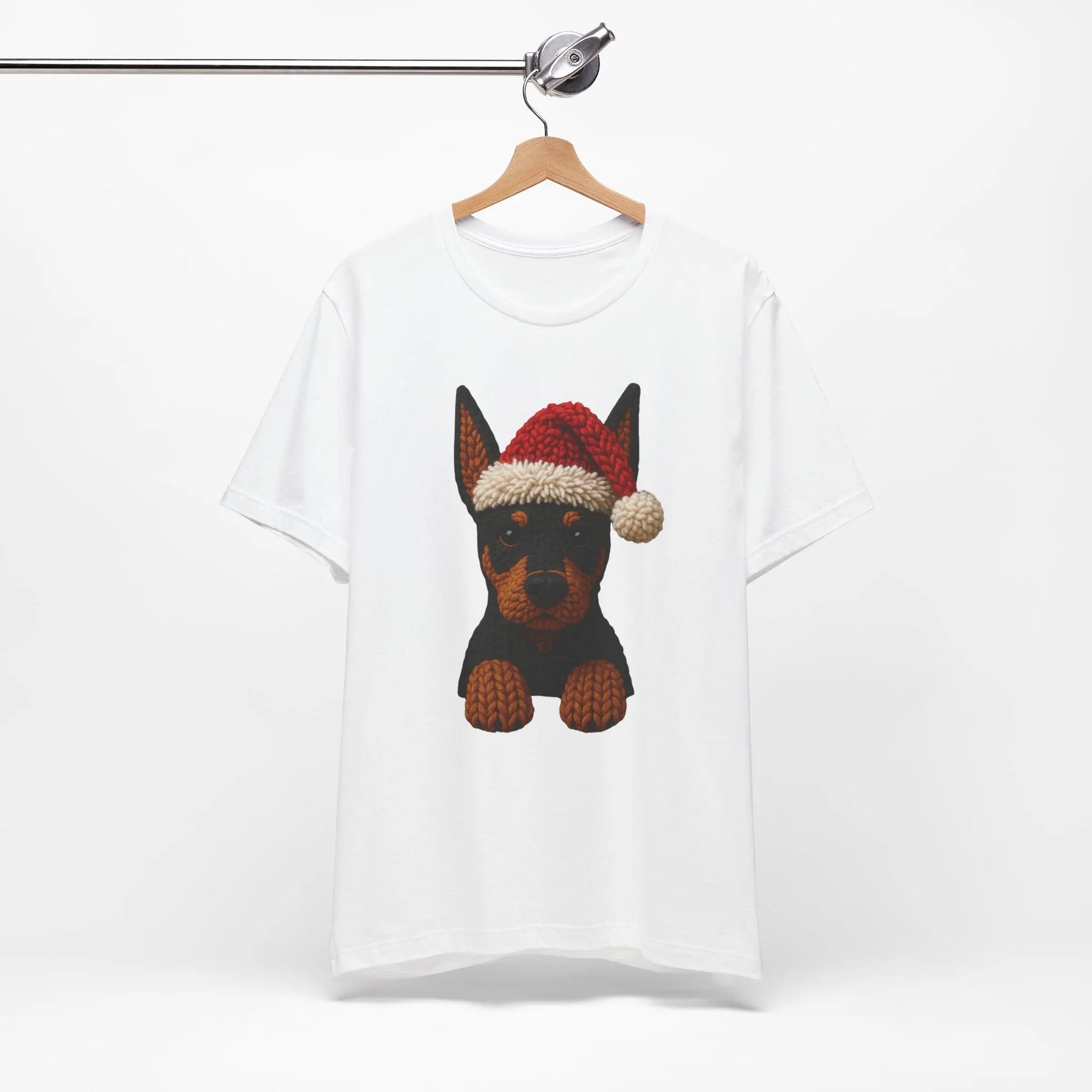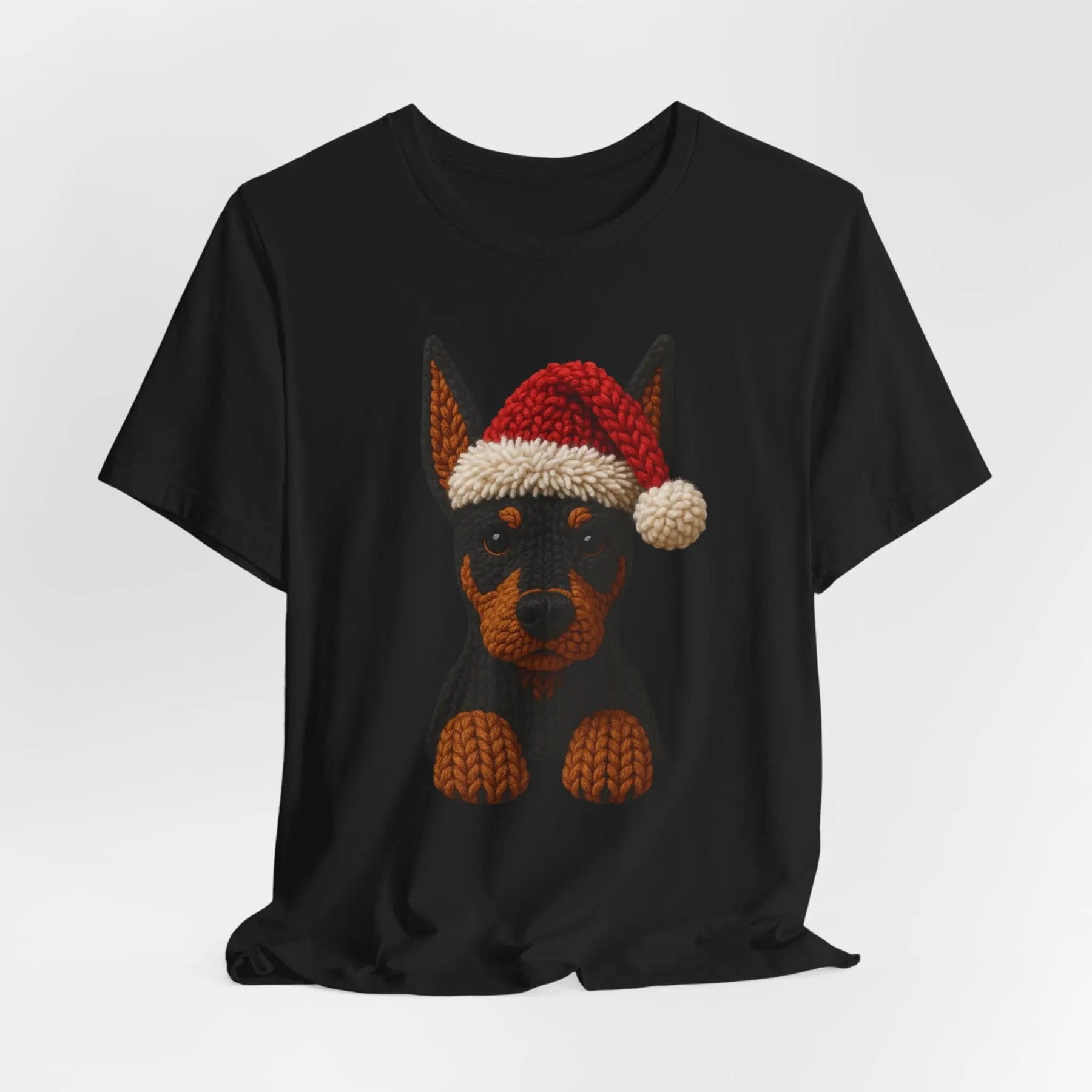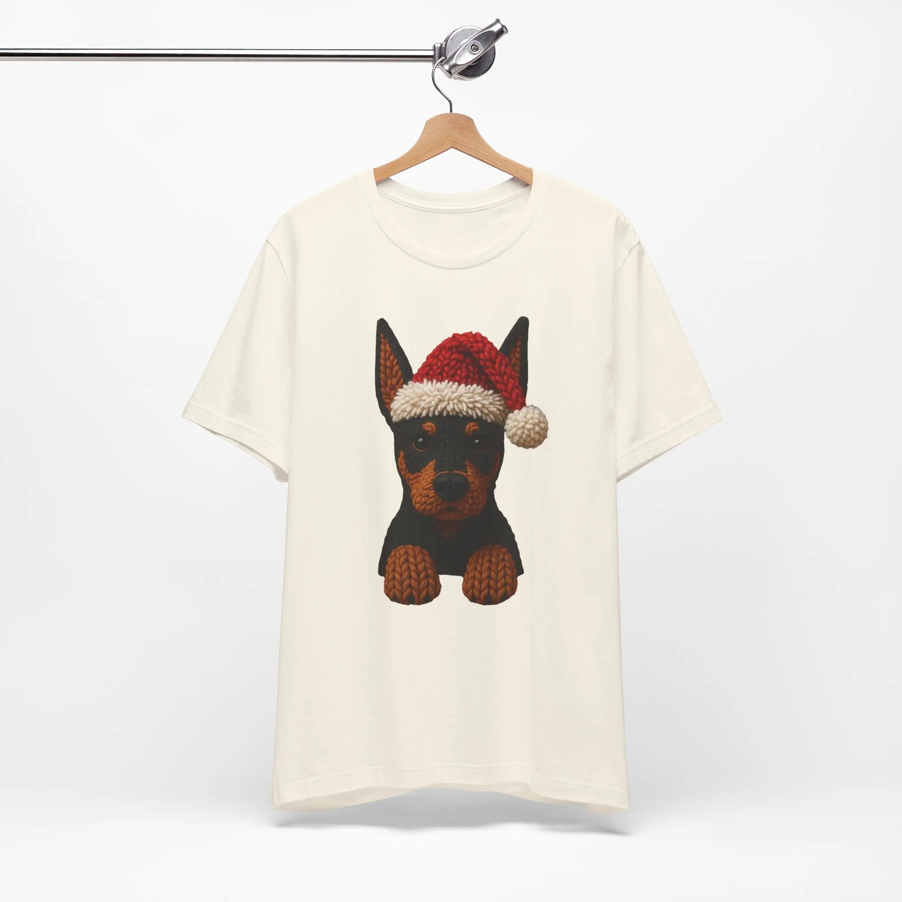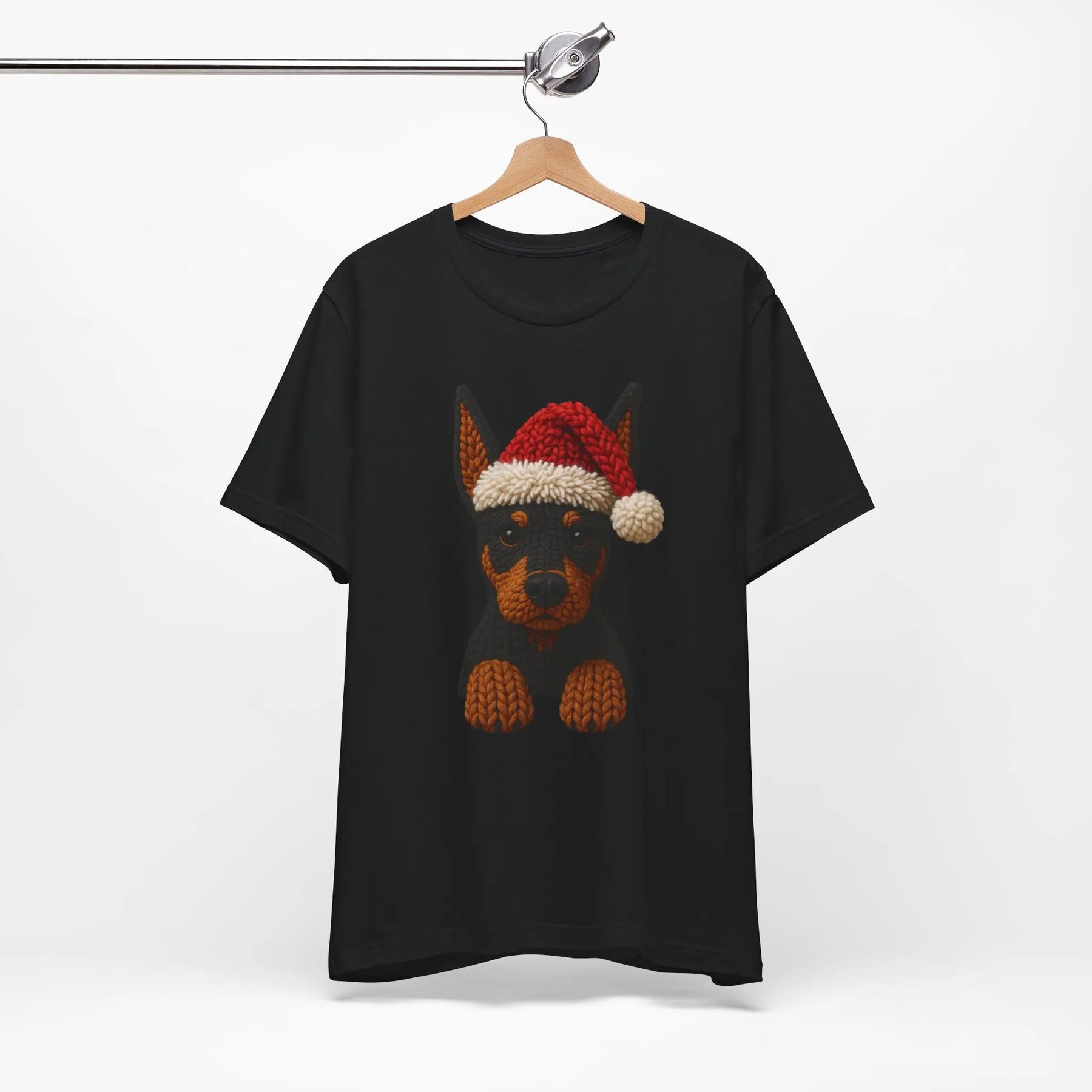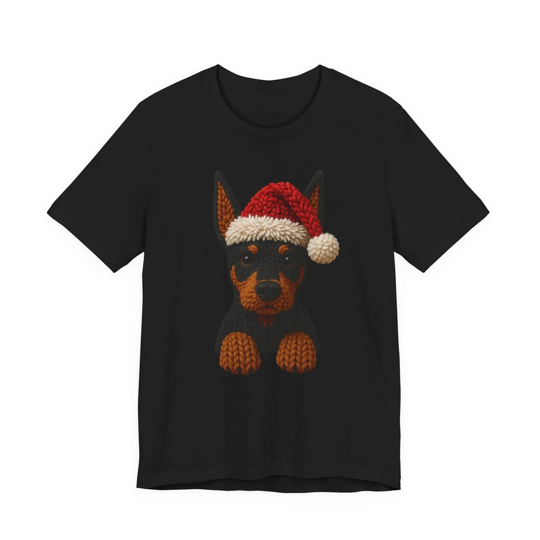 T-shirt en coton premium tout doux, pensé pour traverser l’hiver avec confort et bonne humeur. Au centre, un adorable chiot doberman, entièrement illustré façon gros crochet, coiffé d’un bonnet de Noël moelleux comme un nuage. Un regard tendre, des couleurs chaudes, une présence réconfortante… comme un petit compagnon posé près du feu de cheminée.