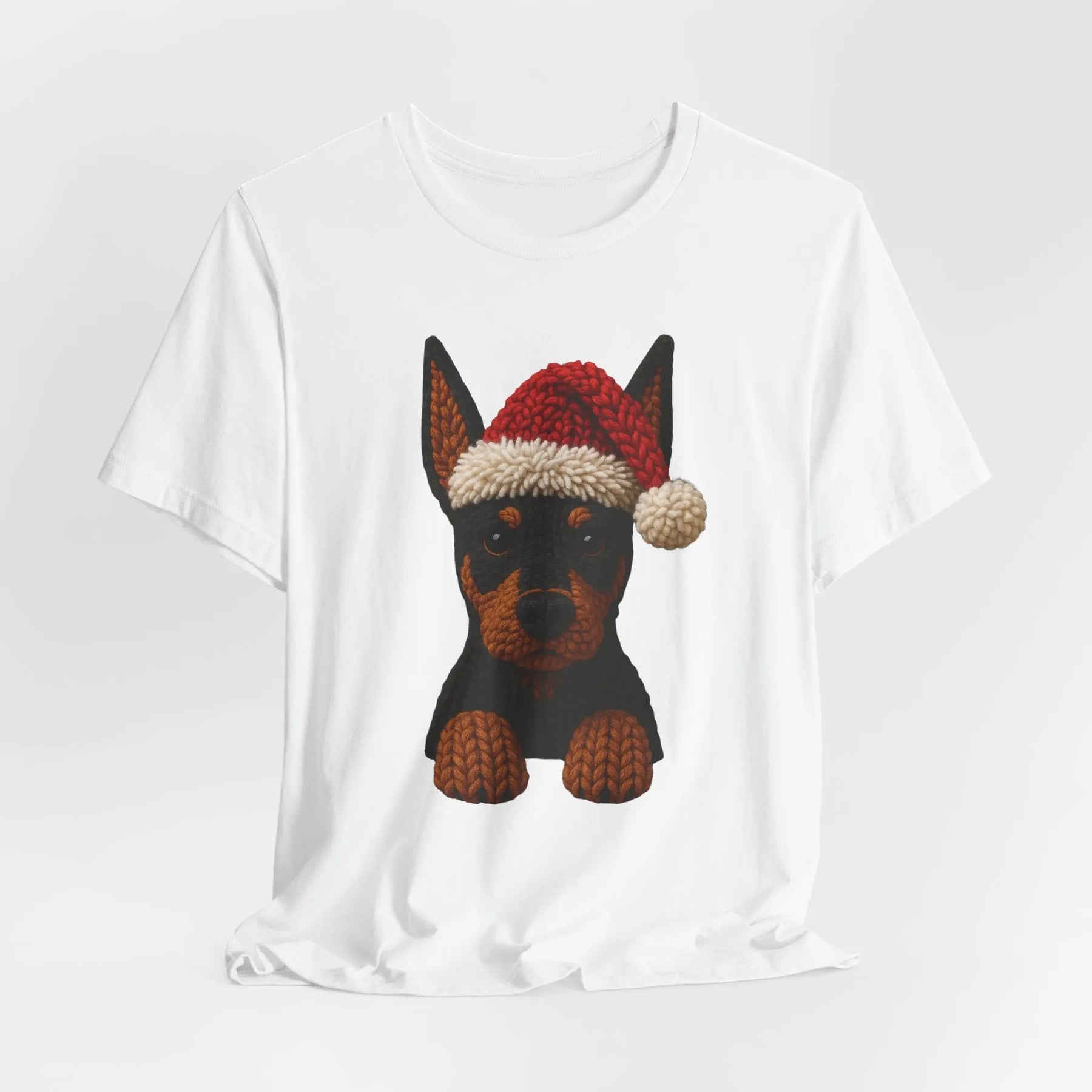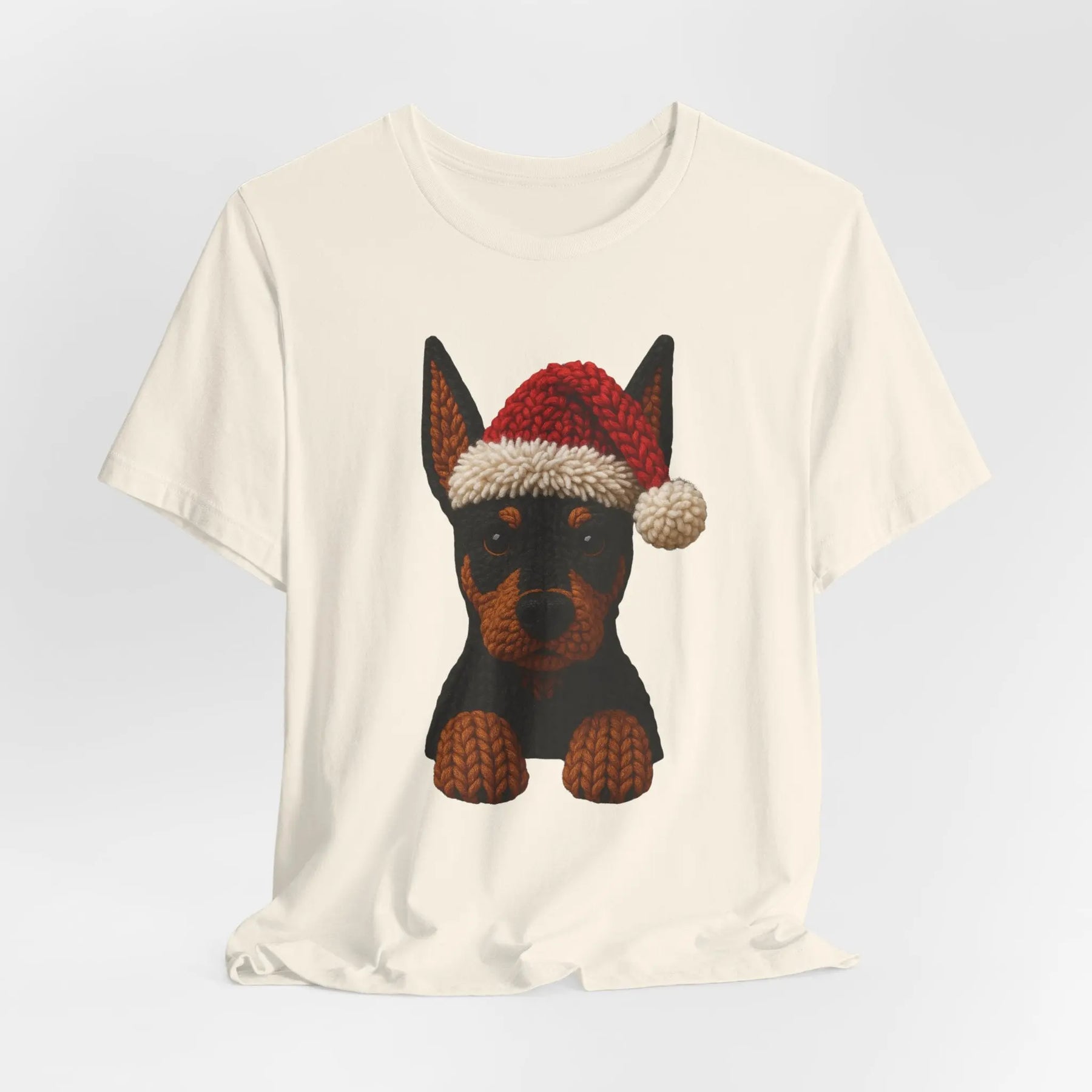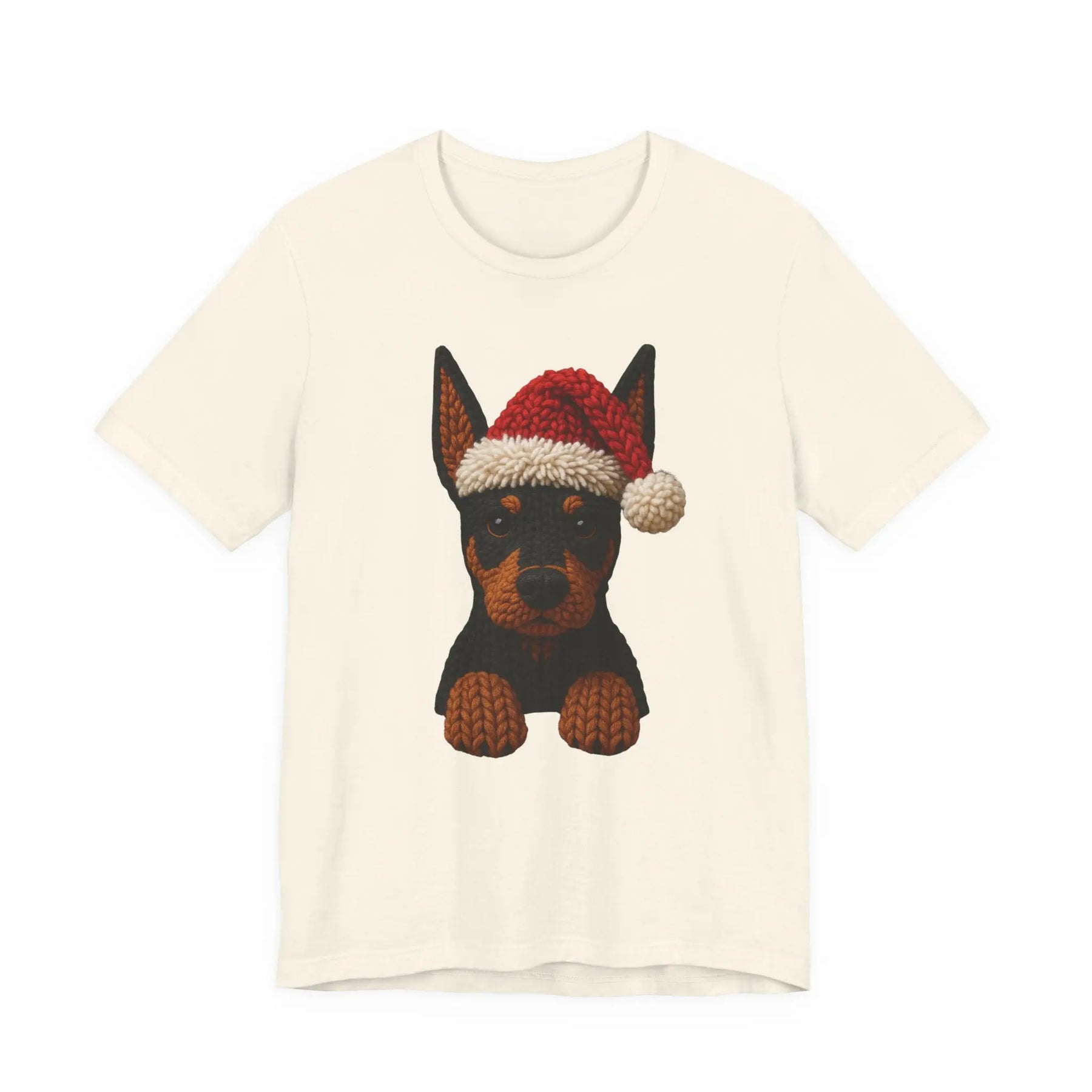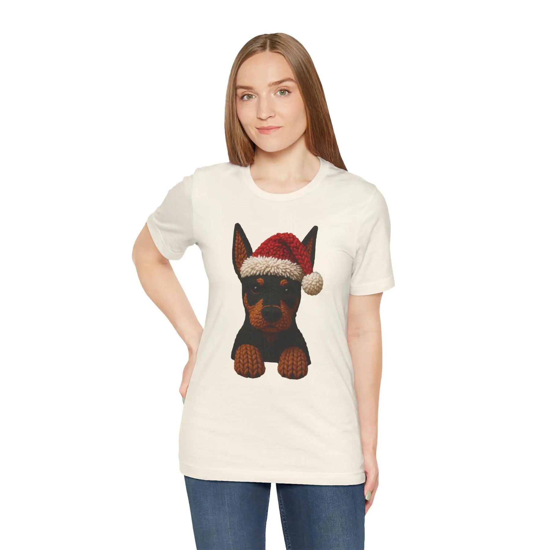 T-shirt en coton premium tout doux, pensé pour traverser l’hiver avec confort et bonne humeur. Au centre, un adorable chiot doberman, entièrement illustré façon gros crochet, coiffé d’un bonnet de Noël moelleux comme un nuage. Un regard tendre, des couleurs chaudes, une présence réconfortante… comme un petit compagnon posé près du feu de cheminée.