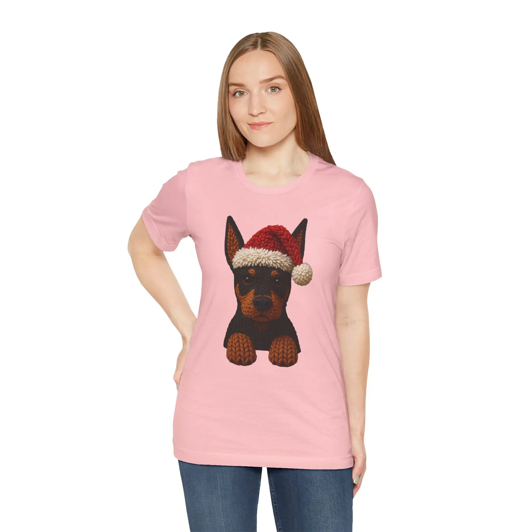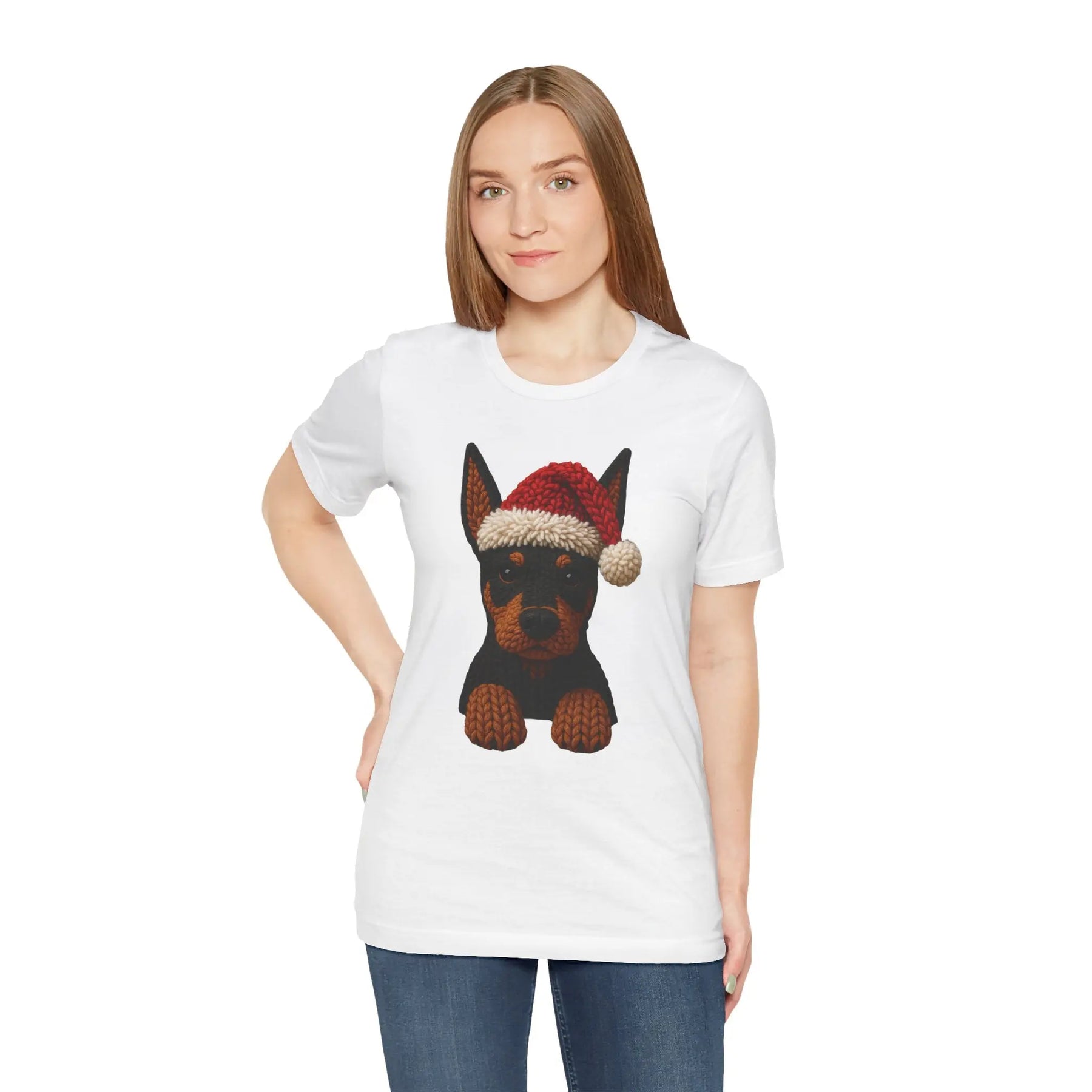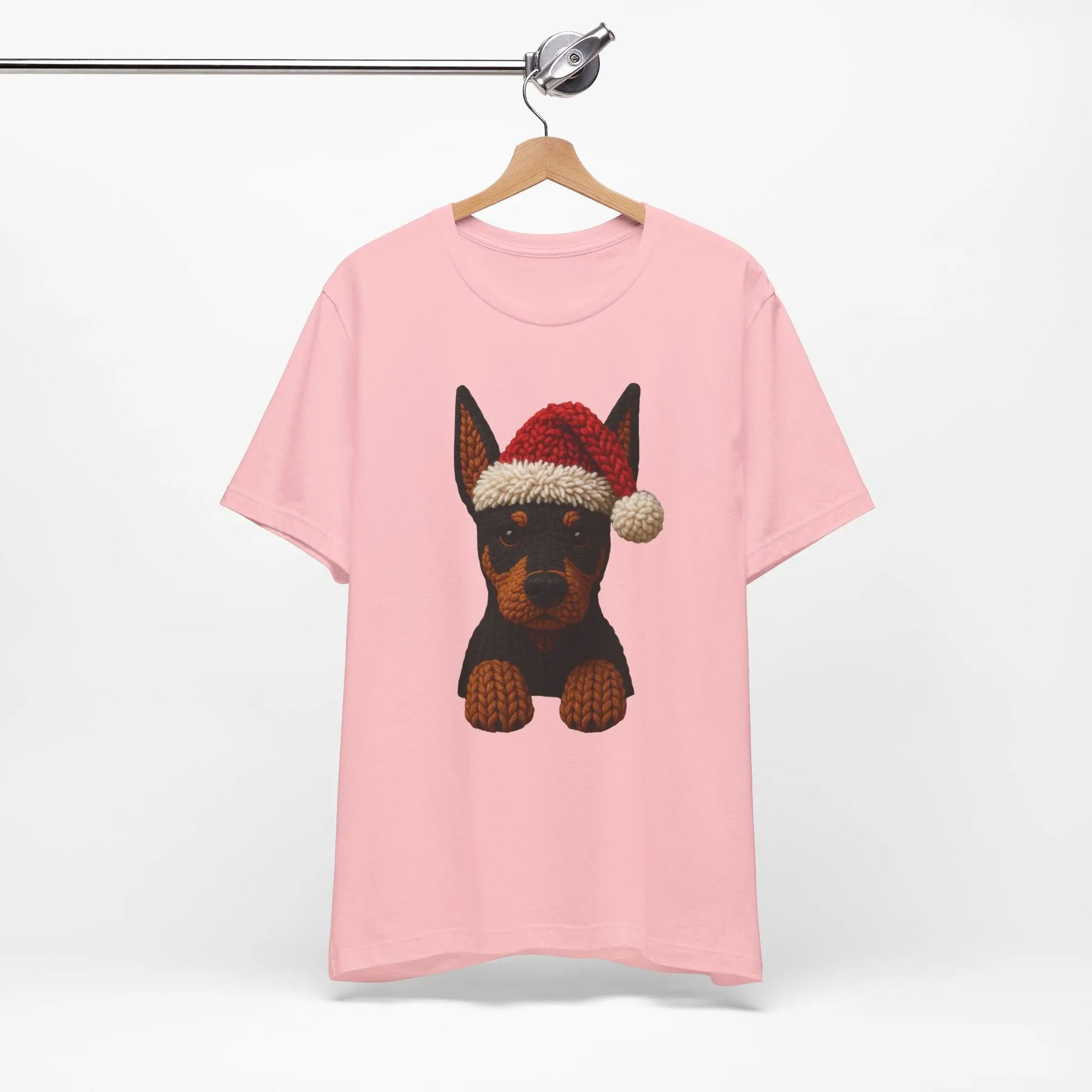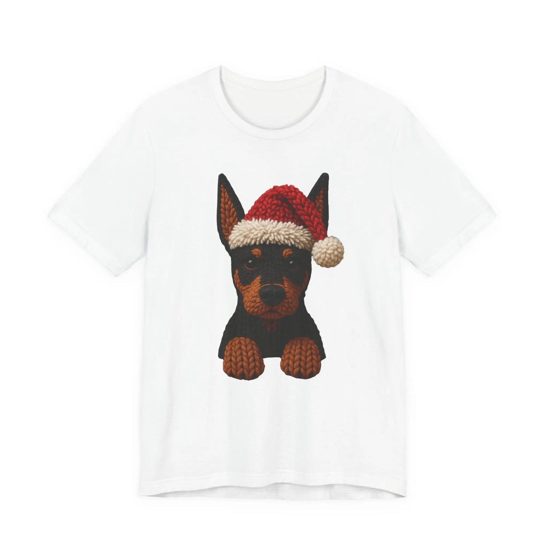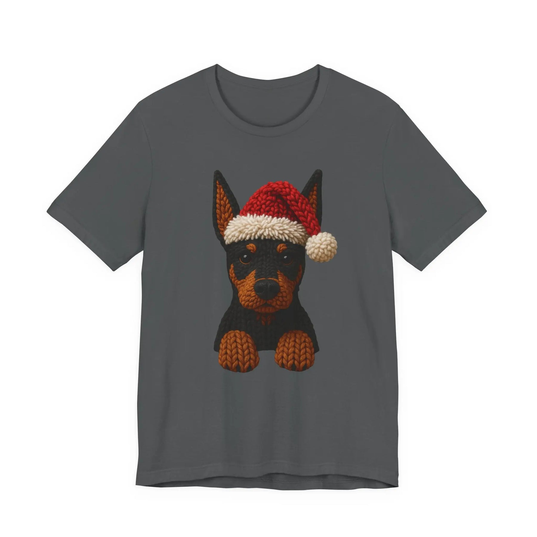 T-shirt en coton premium tout doux, pensé pour traverser l’hiver avec confort et bonne humeur. Au centre, un adorable chiot doberman, entièrement illustré façon gros crochet, coiffé d’un bonnet de Noël moelleux comme un nuage. Un regard tendre, des couleurs chaudes, une présence réconfortante… comme un petit compagnon posé près du feu de cheminée.