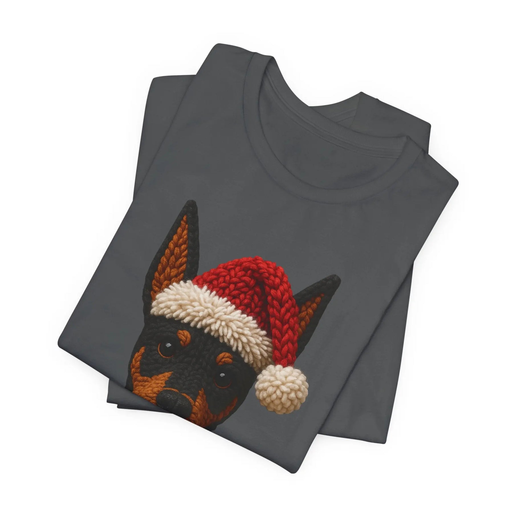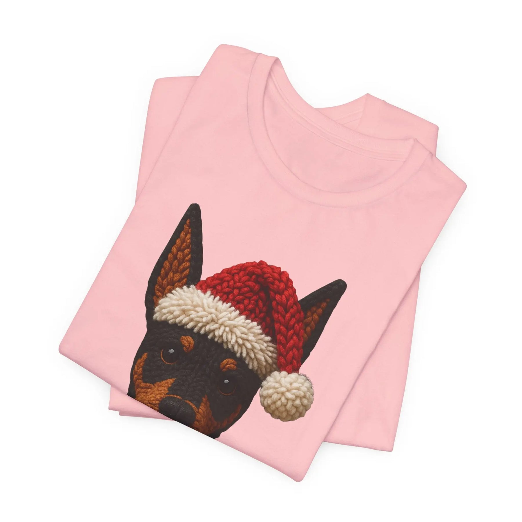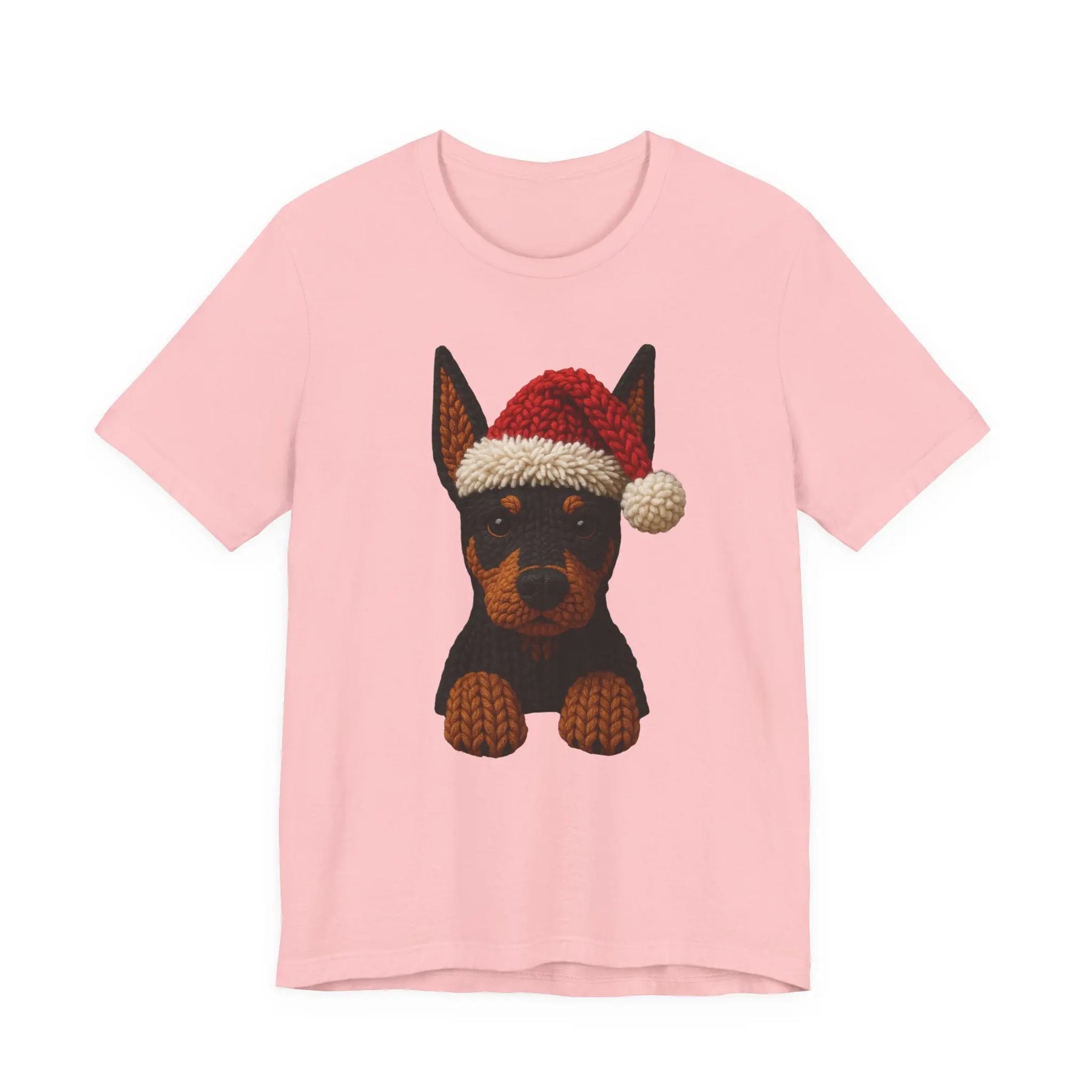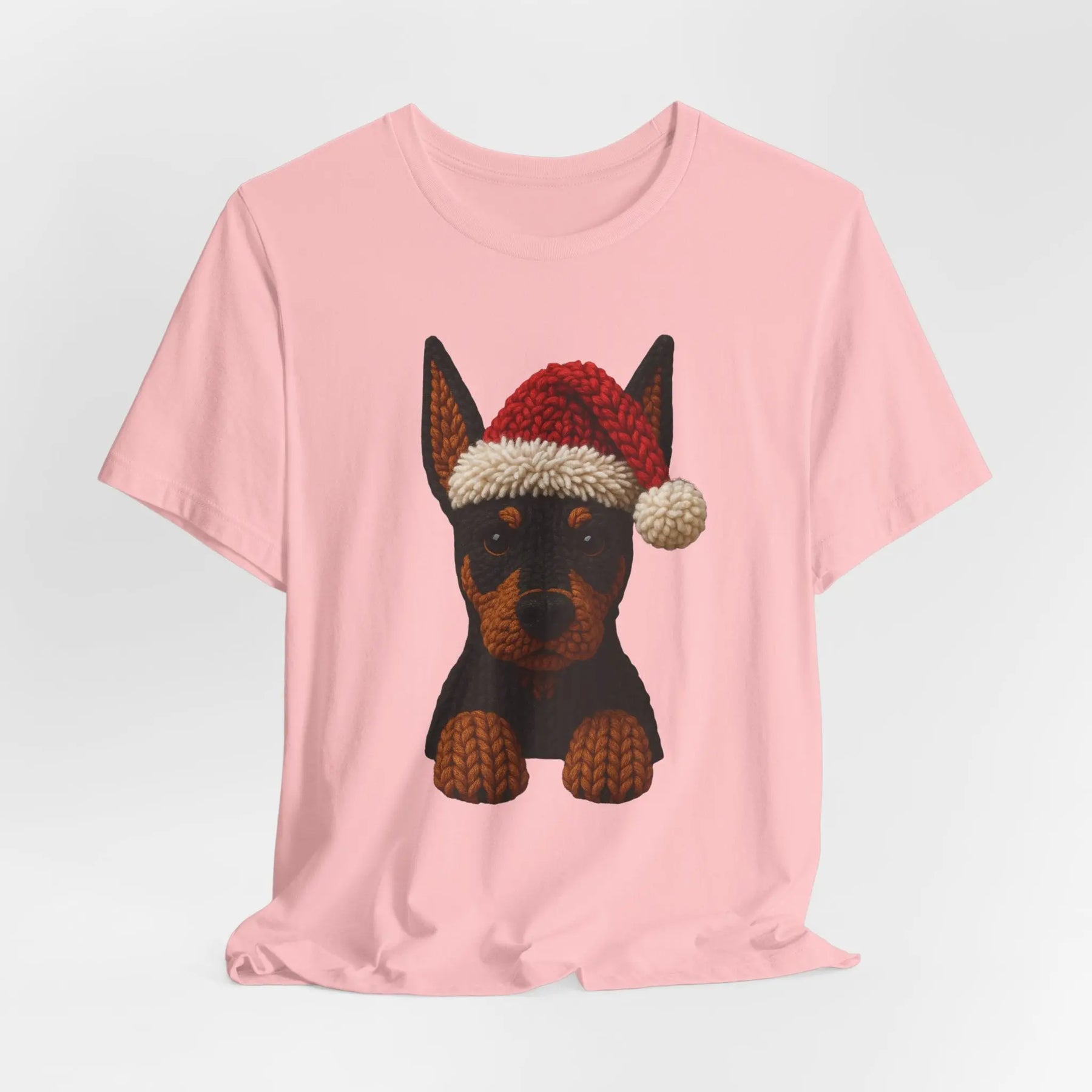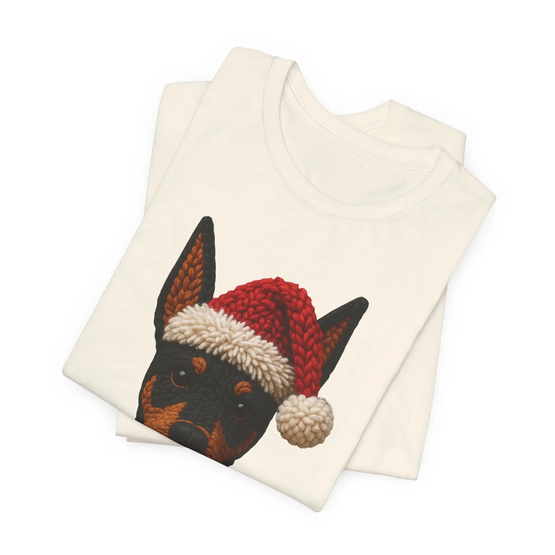 T-shirt en coton premium tout doux, pensé pour traverser l’hiver avec confort et bonne humeur. Au centre, un adorable chiot doberman, entièrement illustré façon gros crochet, coiffé d’un bonnet de Noël moelleux comme un nuage. Un regard tendre, des couleurs chaudes, une présence réconfortante… comme un petit compagnon posé près du feu de cheminée.
