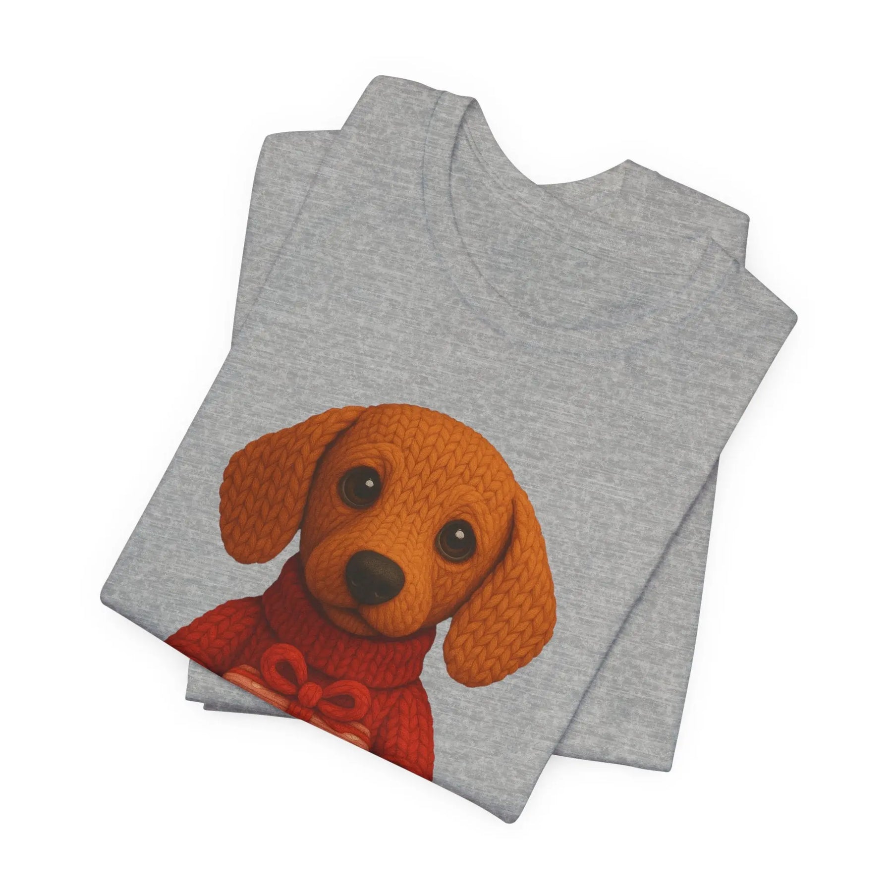 L’impression, nette et précise, met en valeur chaque maille crochetée et chaque détail du visuel. Une pièce idéale pour les amoureux des chiens, des textures tricotées et des cadeaux de Noël qui apportent douceur et sourire.