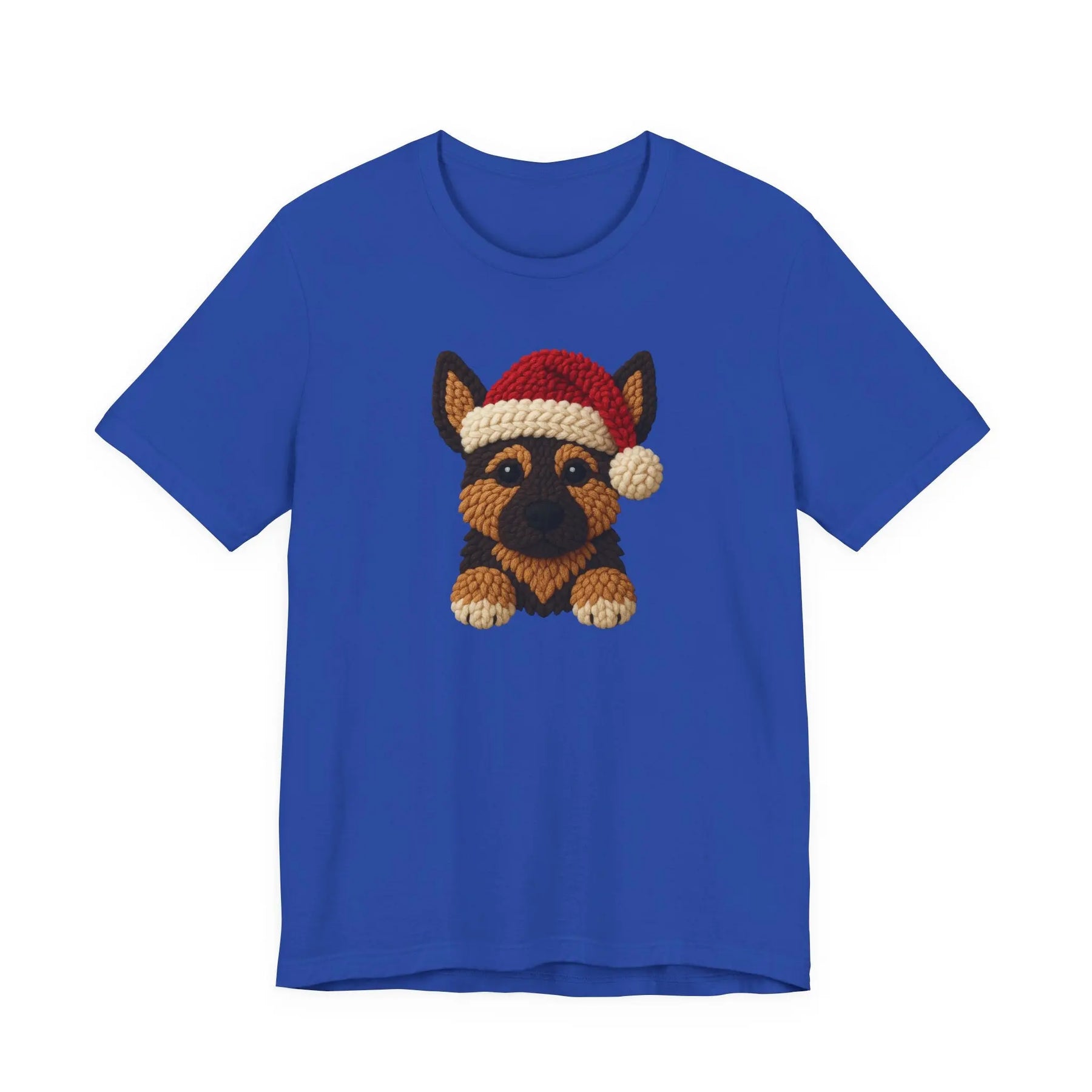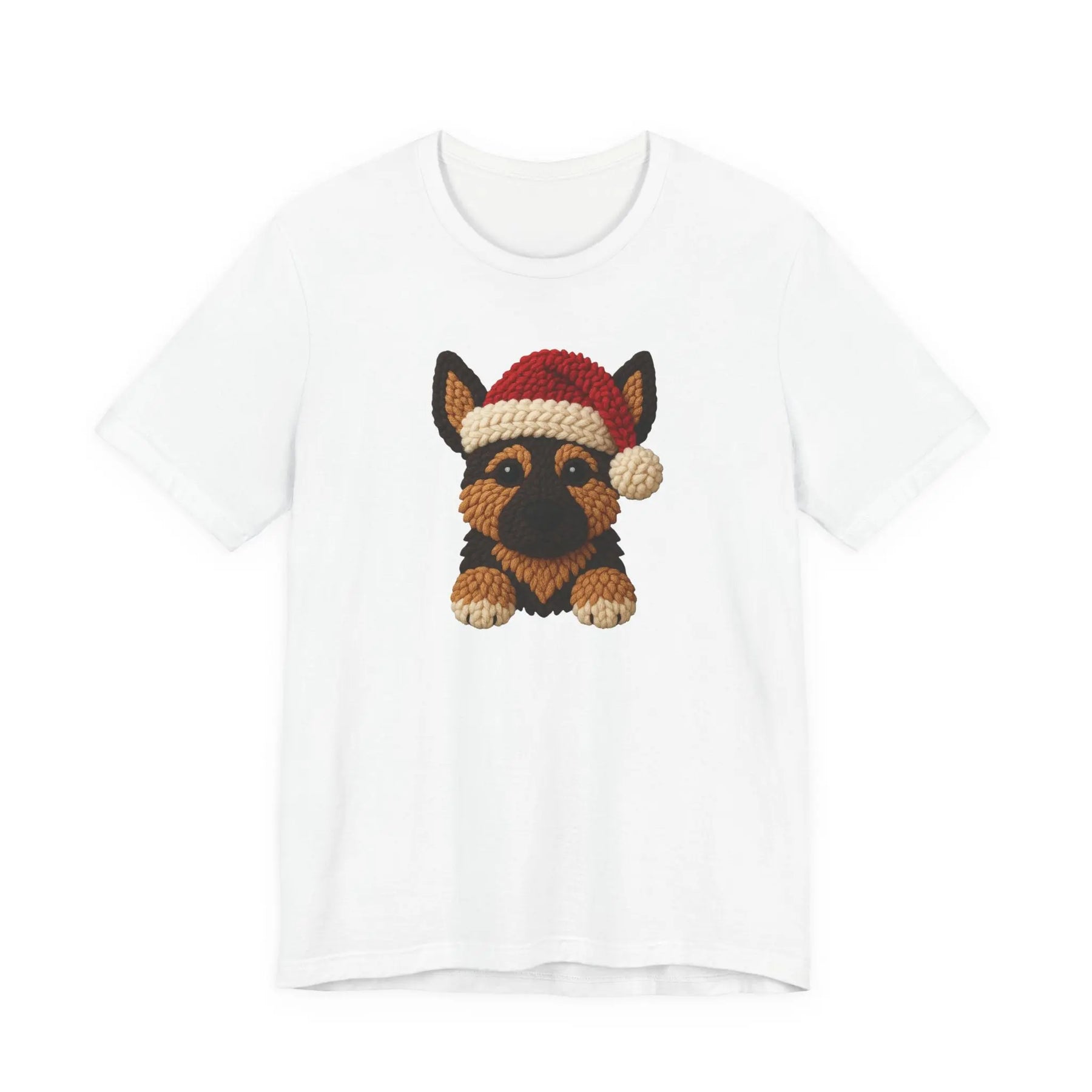 Ce tee shirt noël berger allemand présente un chiot en style tricot, coiffé d’un bonnet rouge, pour une ambiance chaleureuse et festive. Le tee shirt noël berger allemand reste léger, respirant et agréable à porter sous une veste, un cardigan ou seul pour un look hivernal confortable. Le design soigné rappelle les ouvrages faits main et apporte une touche joyeuse à la saison.