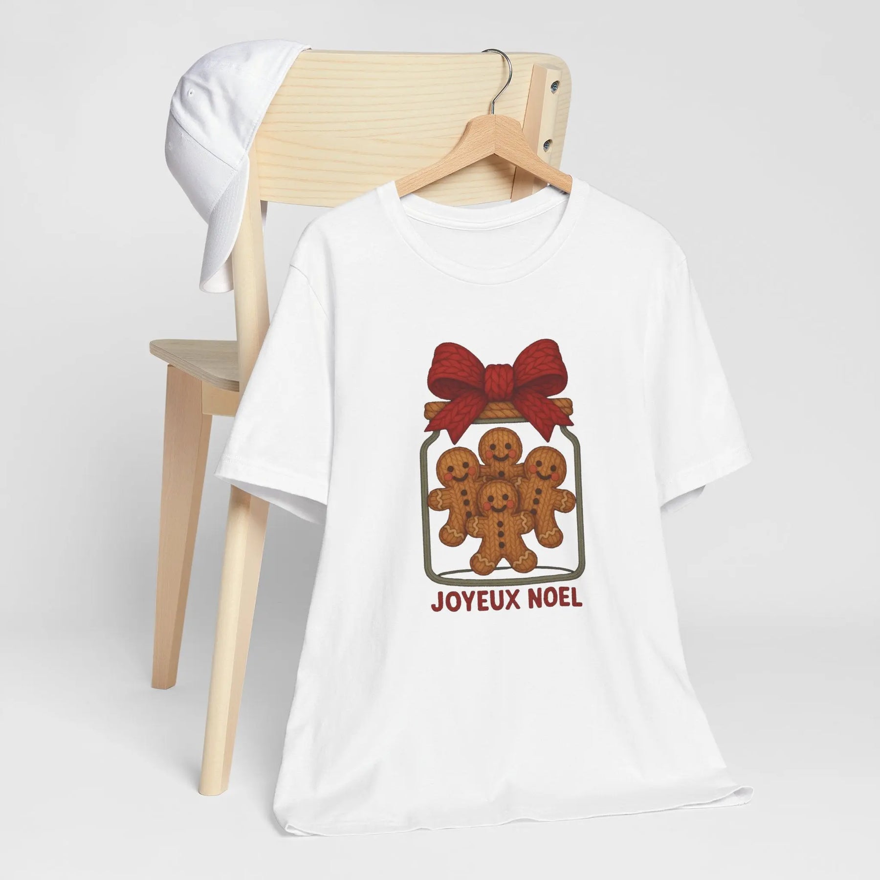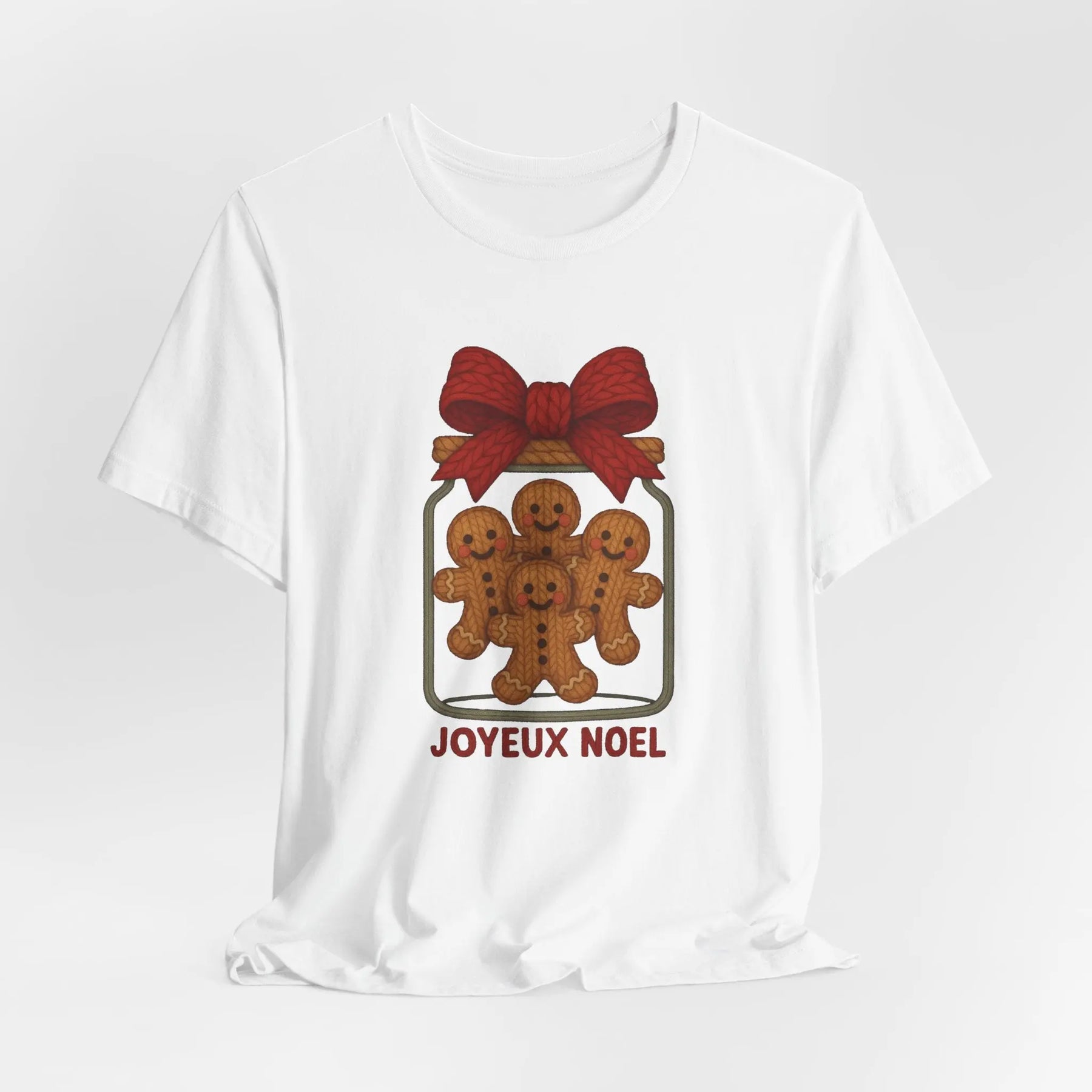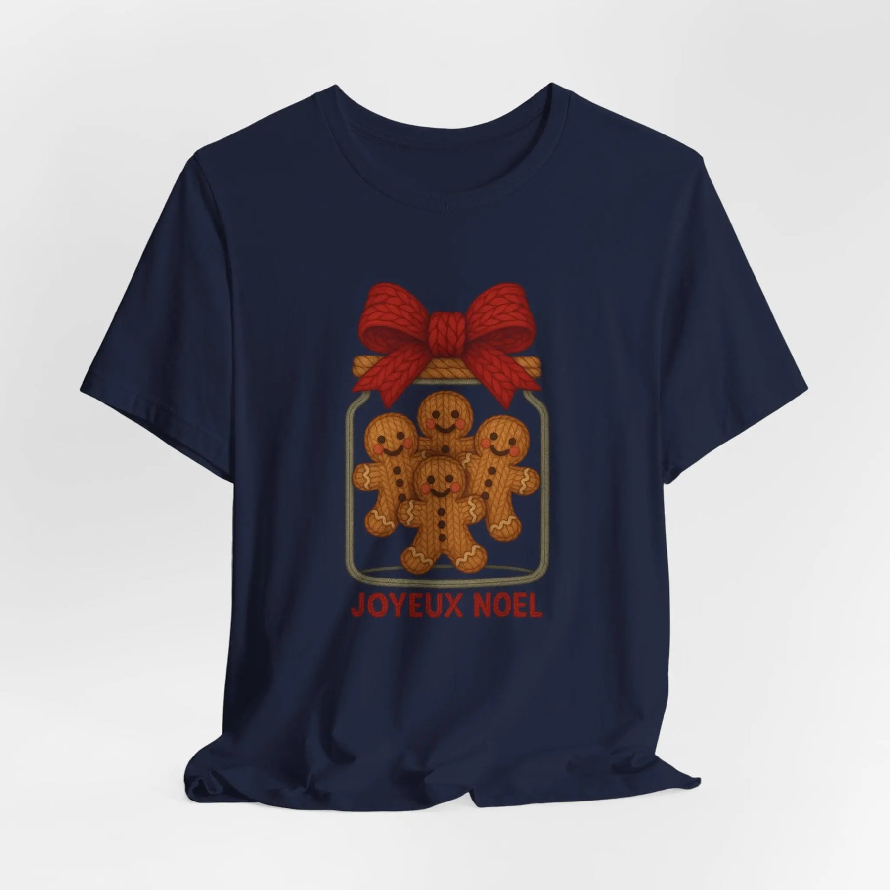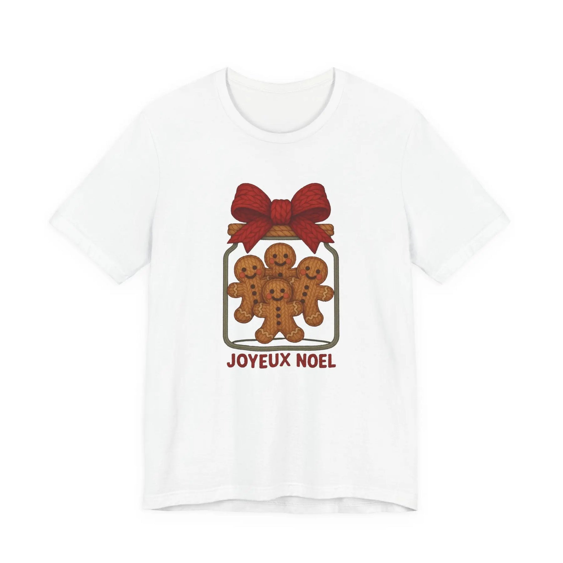 Un t-shirt doux, léger et résolument joyeux, pensé pour accompagner toute la magie du mois de décembre. Sur le visuel, trois petits bonhommes pain d’épice souriants, dessinés en style gros crochet moelleux, sont réunis sous un large ruban rouge noué à la main. Juste en dessous, la mention “Joyeux Noël” complète la scène avec une touche chaleureuse et festive — l’équivalent textile d’une odeur de biscuits sortant du four.
