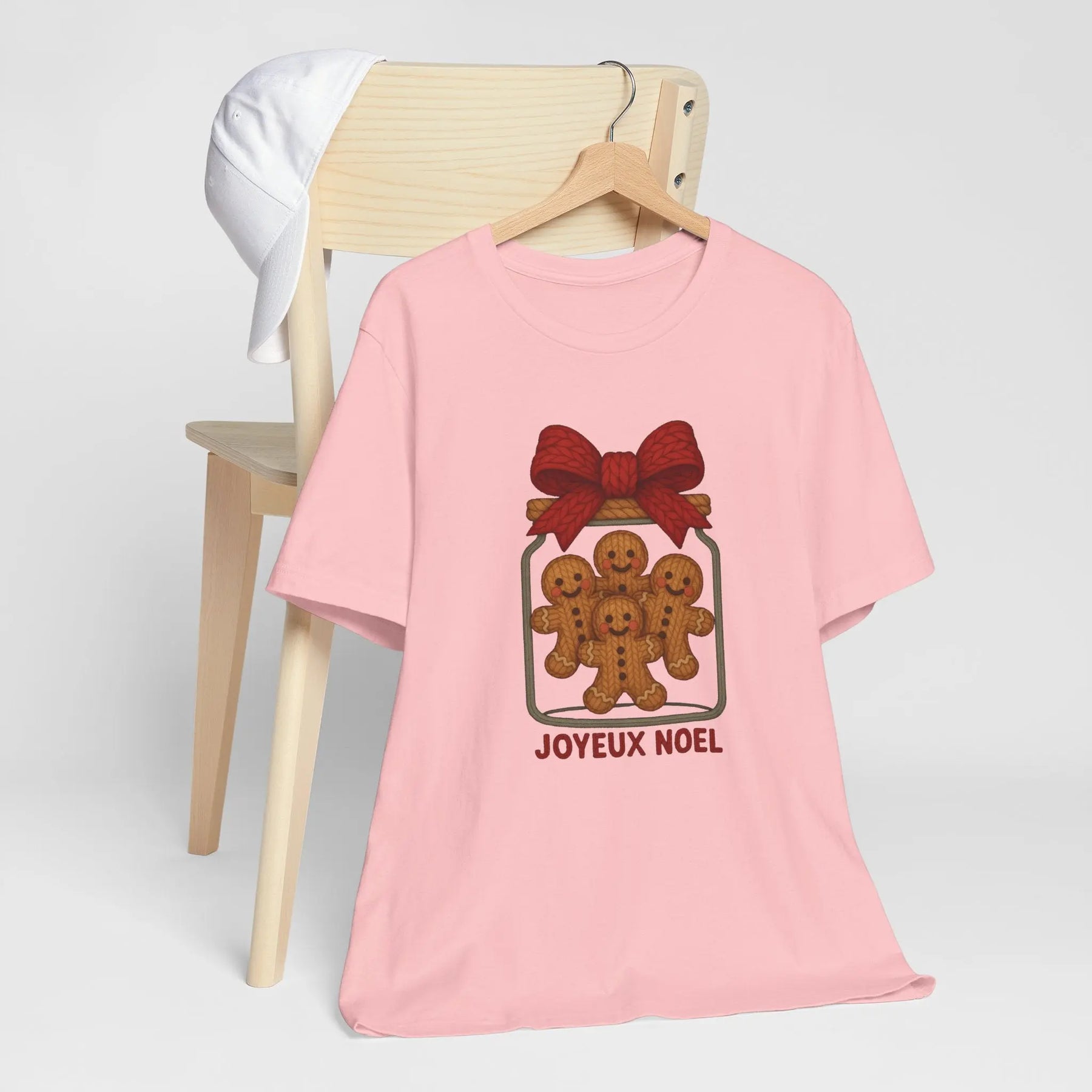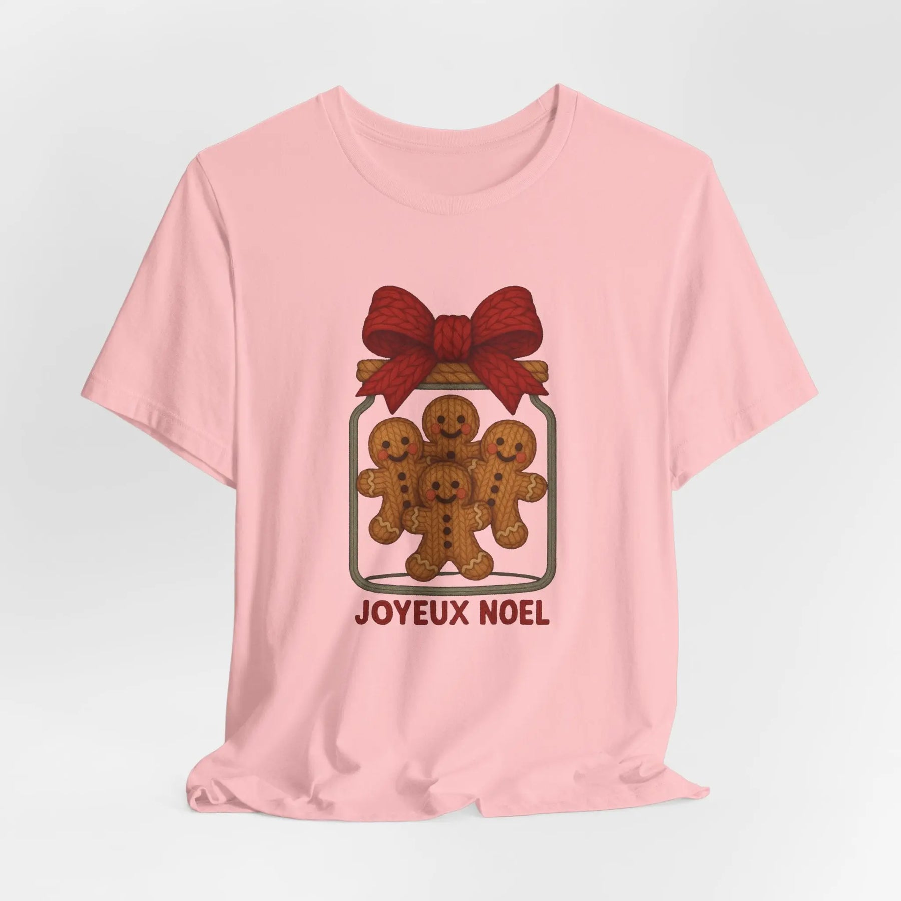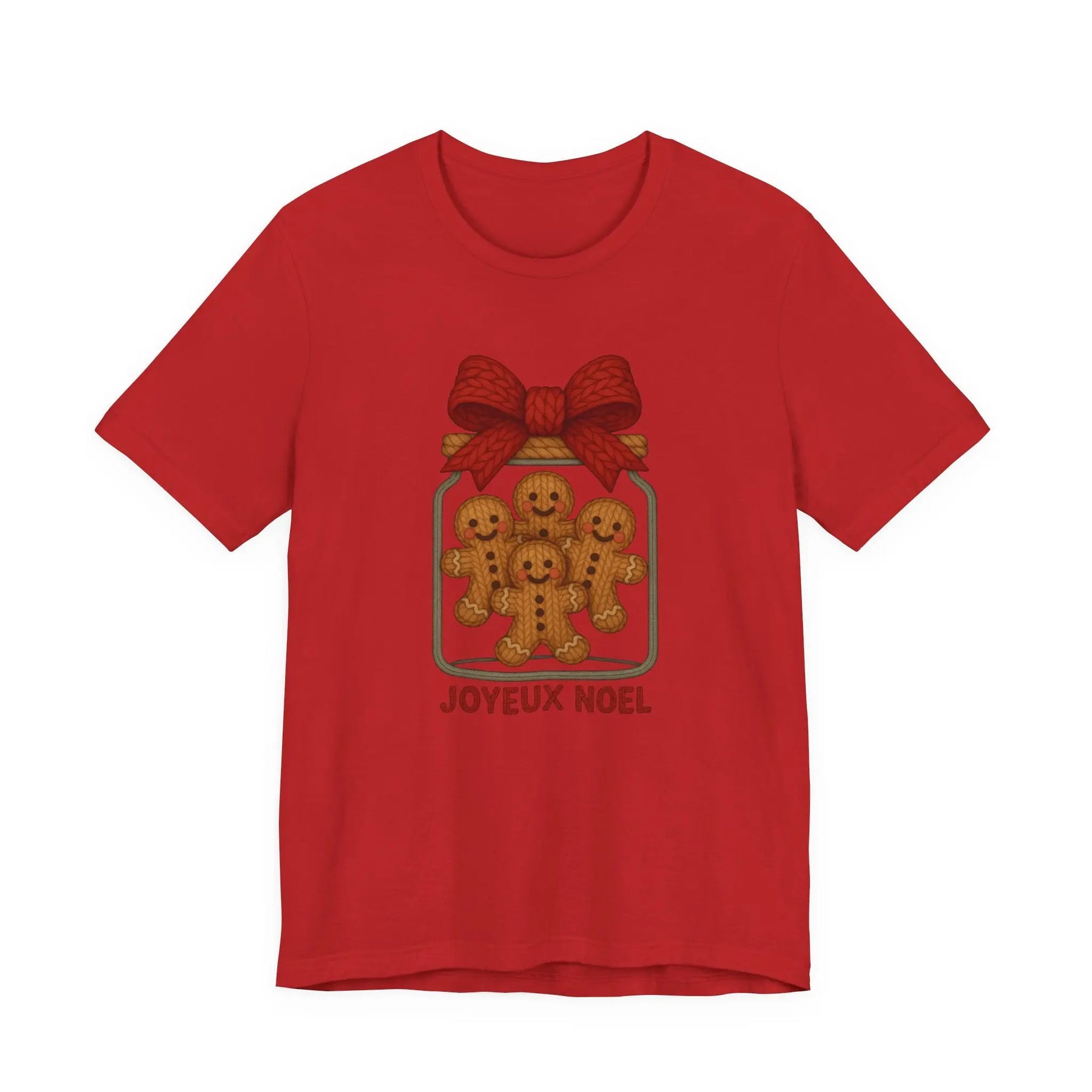 Un t-shirt doux, léger et résolument joyeux, pensé pour accompagner toute la magie du mois de décembre. Sur le visuel, trois petits bonhommes pain d’épice souriants, dessinés en style gros crochet moelleux, sont réunis sous un large ruban rouge noué à la main. Juste en dessous, la mention “Joyeux Noël” complète la scène avec une touche chaleureuse et festive — l’équivalent textile d’une odeur de biscuits sortant du four.