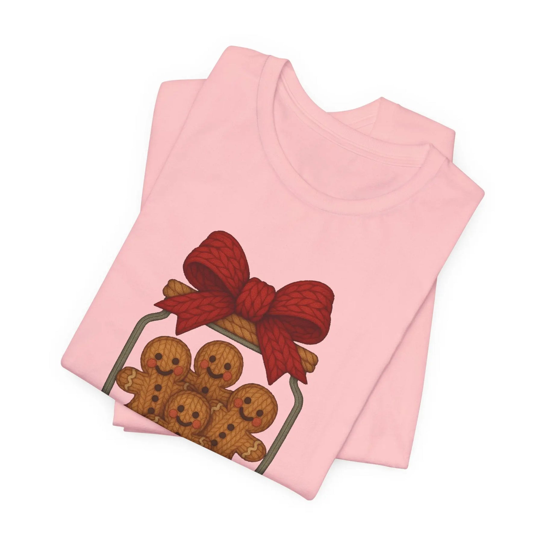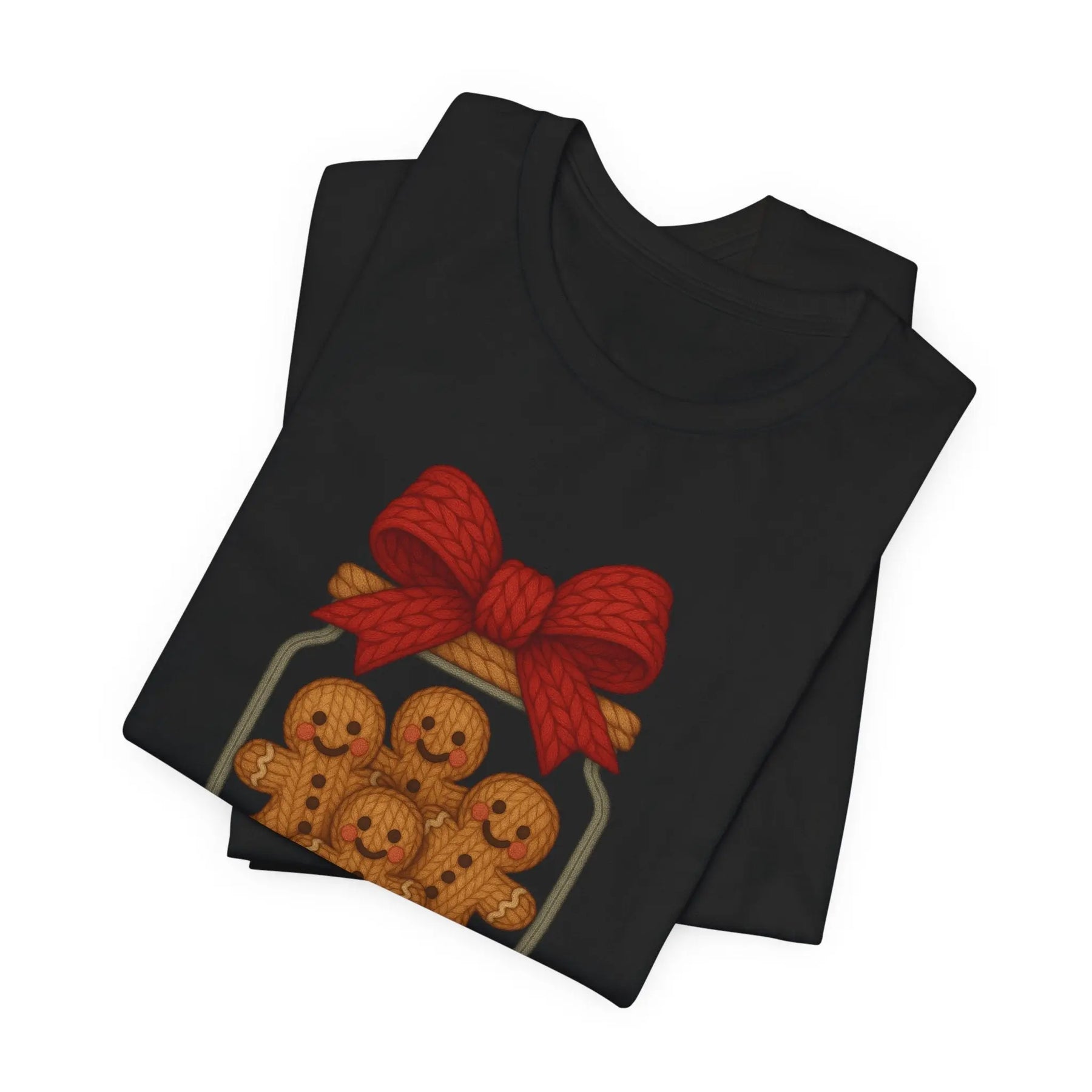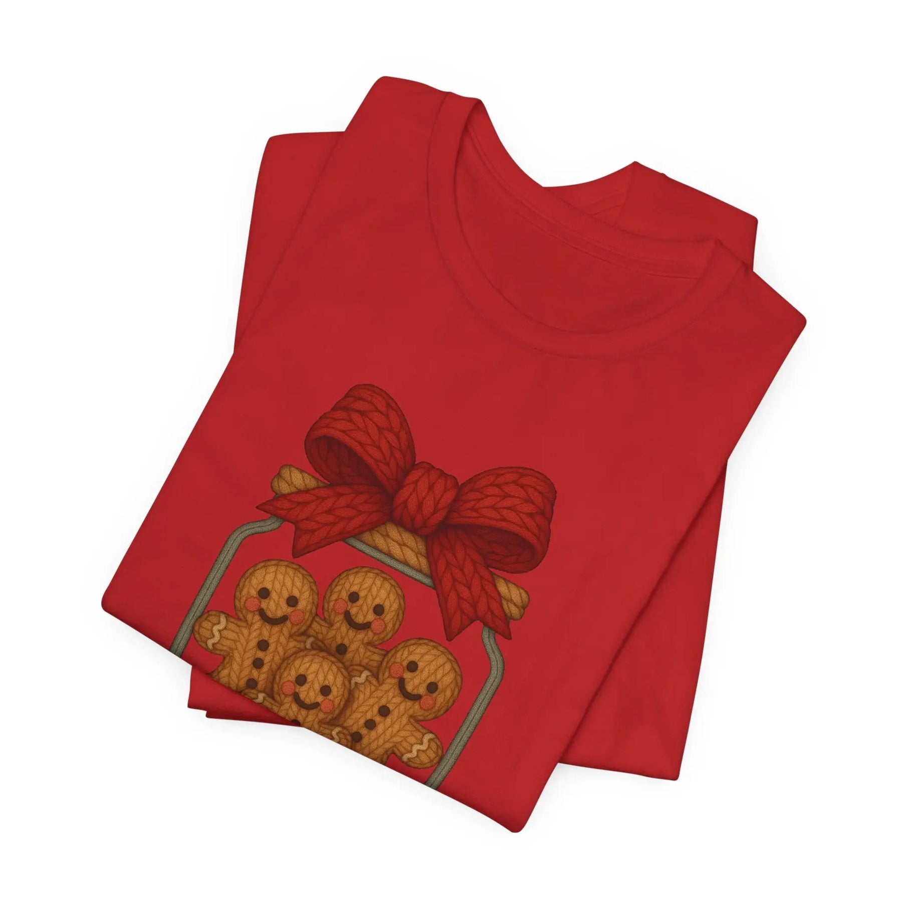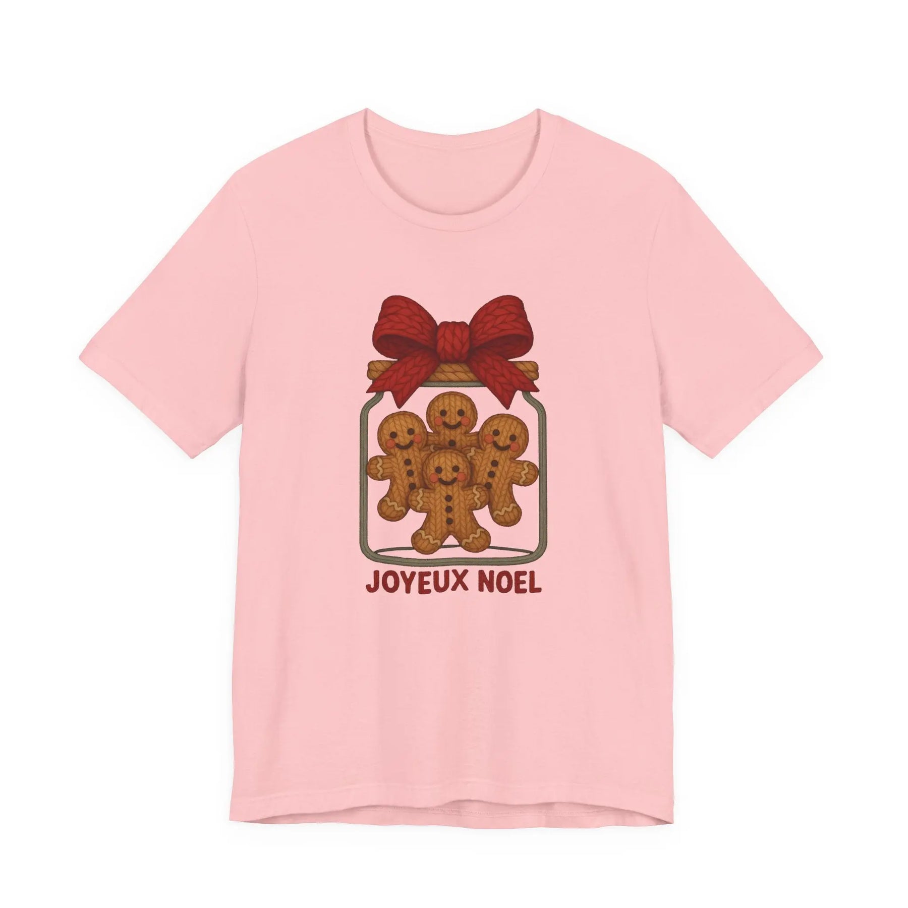 Un t-shirt doux, léger et résolument joyeux, pensé pour accompagner toute la magie du mois de décembre. Sur le visuel, trois petits bonhommes pain d’épice souriants, dessinés en style gros crochet moelleux, sont réunis sous un large ruban rouge noué à la main. Juste en dessous, la mention “Joyeux Noël” complète la scène avec une touche chaleureuse et festive — l’équivalent textile d’une odeur de biscuits sortant du four.