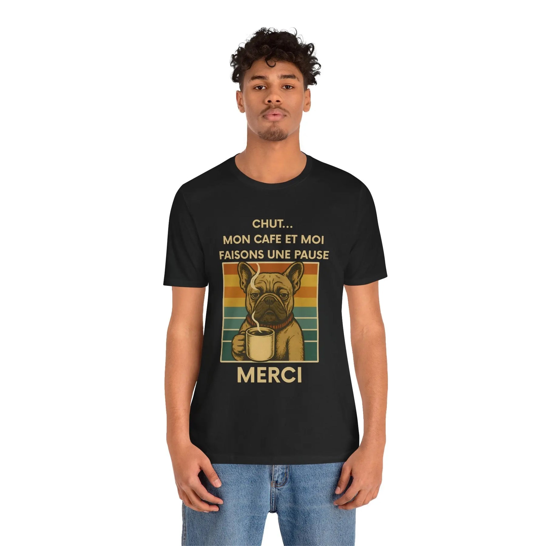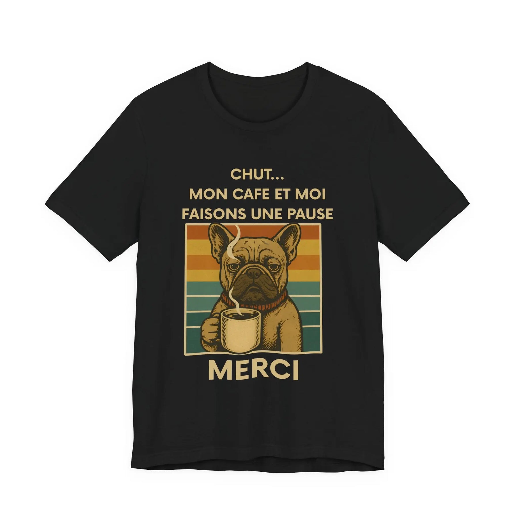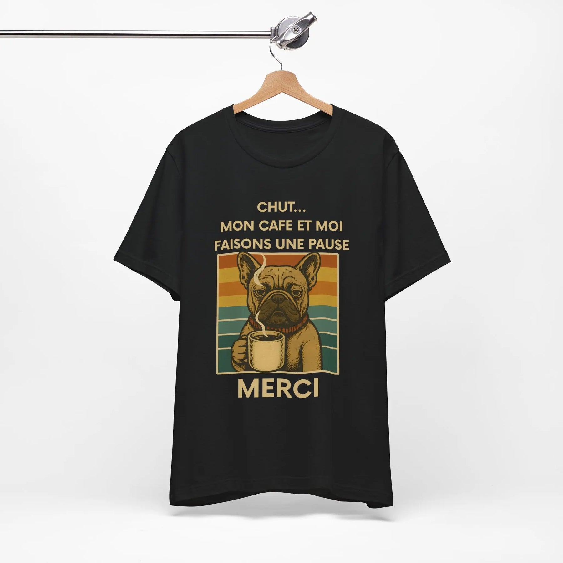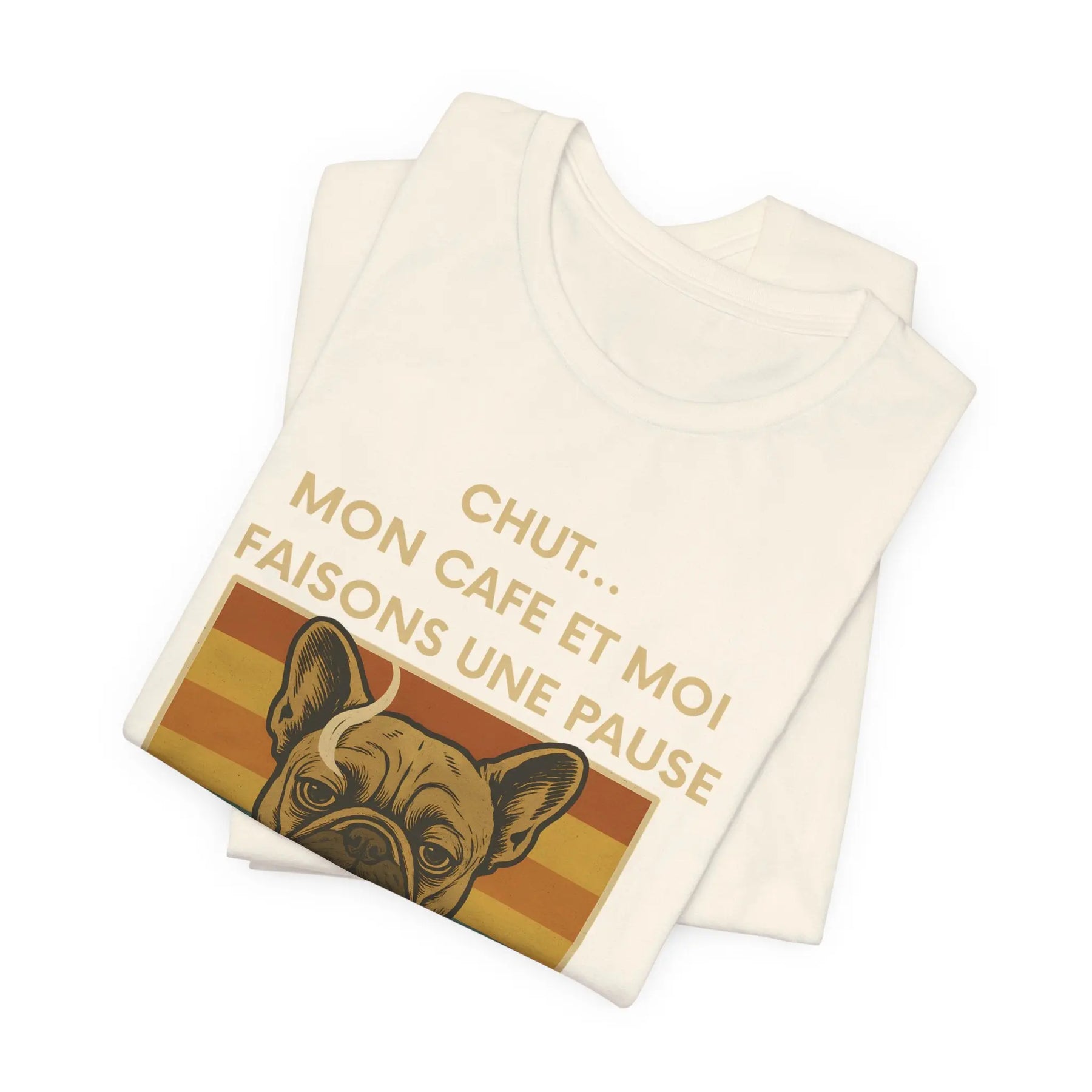 Un tee-shirt doux, léger et terriblement attachant, qui capture ce petit moment sacré du matin : celui où l’on savoure son café en silence. Au centre, un bouledogue au regard expressif, illustré dans un style vintage rétro, tenant sa tasse fumante avec une attitude délicieusement bougonne. Un design entièrement pensé pour les amoureux de chiens… et de café.